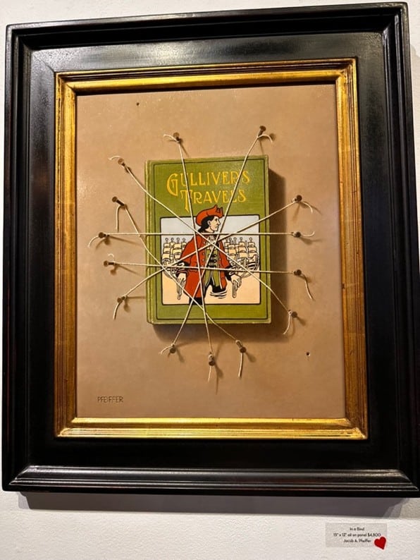 I haven’t written a blogpost in a while because like Gulliver, in Jacob A. Pfeiffer’s trompe l’oiel painting above, I’ve been in a bind.